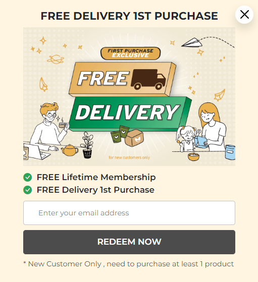 If you have yet to register, join us now and by making your first purchase and you will be able to enjoy new members-only promotion. Get Started: 1) Click [HERE]. 2) Enter your email address and click [Redeem Now]. Disclaimer: The new customer promotion deal varies from time to time 🤗 3) Start browsing and choose any item(s) that's right for you