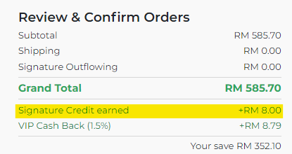 The rebate is the same concept as cashback. It would not be straightly deducted from the current order upon making the payment. It will be reflected in your membership account once you have made a purchase and you can see if the amount is reflected accordingly at your Store Credit Balance. You may utilize the rebate on your next purchase!