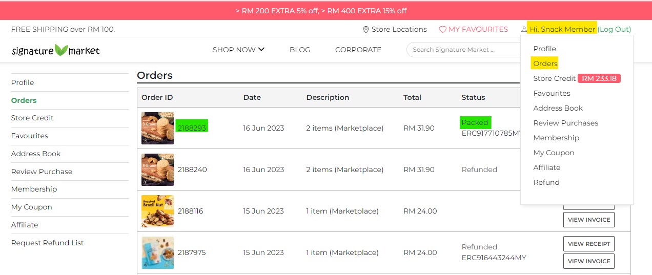 You are able to check your order / purchase history from "My Orders” (Image 4) once you have logged in to your account. Do click on the Order Number and you may get further details of the parcel movement (Image 5)! You may also download the receipt by click " VIEW RECEIPT" (Image 5).